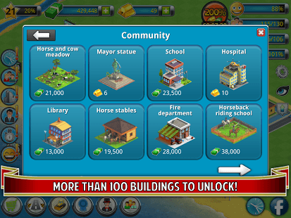 - Amplía tu ciudad para crear más espacio para la construcción de más edificios, y hacer avanzar tu pueblo hacia una metrópoli con rascacielos.