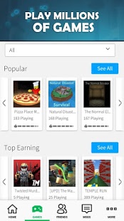 Diviértete con tus amigos y otros millones de exploradores virtuales en computadoras, dispositivos móviles, consolas y VR en una amplia variedad de juegos sociales. ROBLOX es la comunidad más grande de gaming generada por los usuarios, donde más de 700,000 creadores producen una variedad infinita de experiencias inmersivas que esperan ser jugadas.