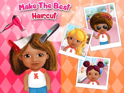 ¡Laila tiene un pelo súper rizado! Es por lo que viene a tu salón de belleza para pedirte que le hagas un cambio de look. ¡Limpia, corta, peina y dale a Laila un bonito cambio de imagen! Después usa tu fabuloso sentido de la estética jugando a vestirla y crea el outfit perfecto para la pequeña Laila!