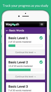 Esta aplicación te da libre acceso a todos los generales de Magoosh, GRE, SAT y pruebas de vocabulario TOEFL. Iniciar sesión con una cuenta de Magoosh (o crear uno nuevo) para guardar su progreso a la web.